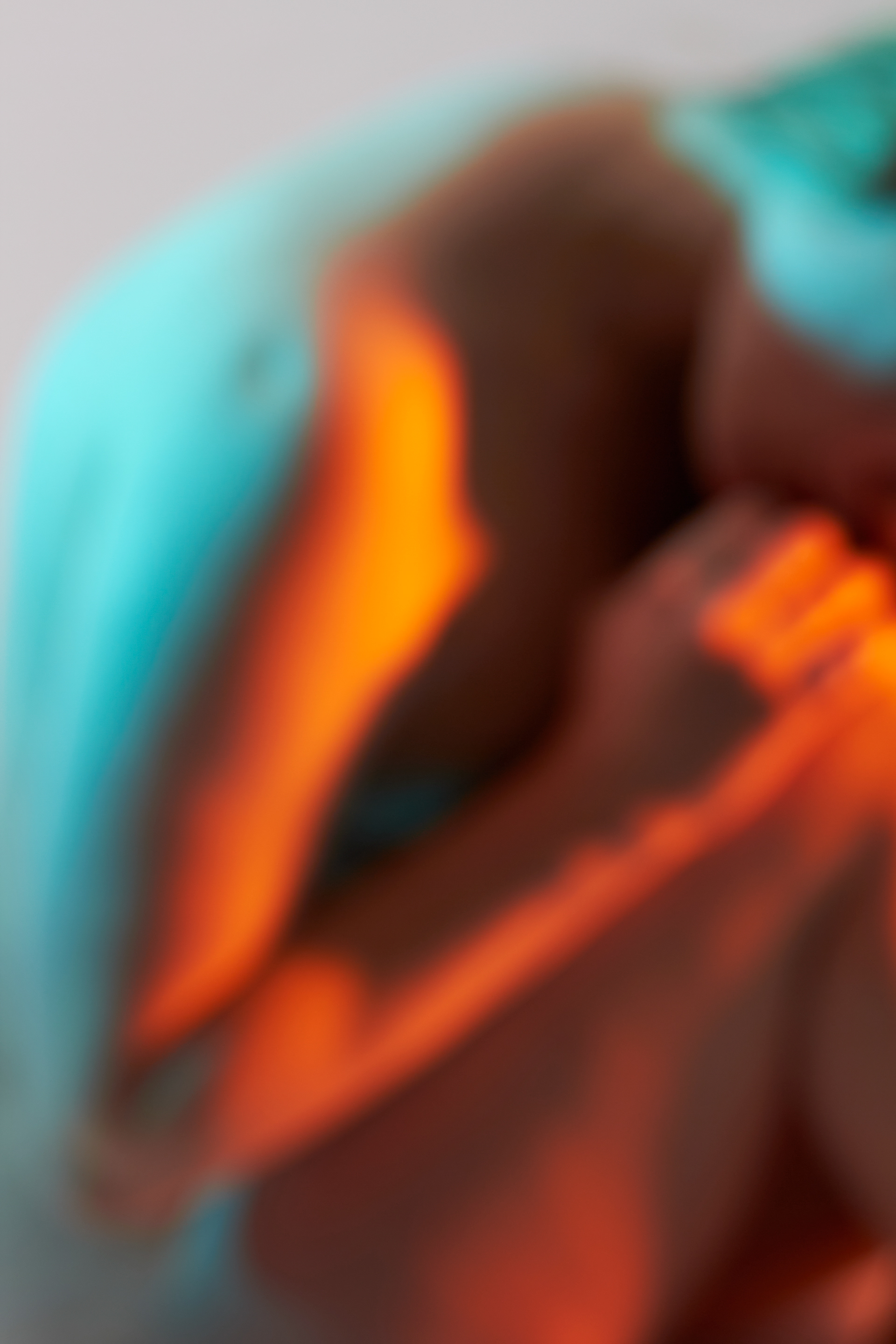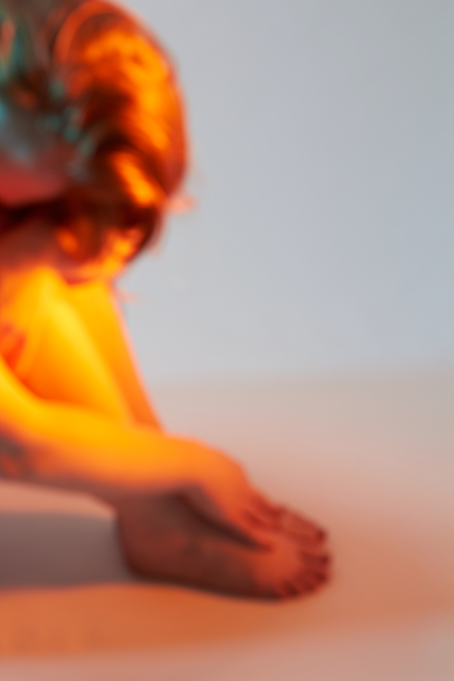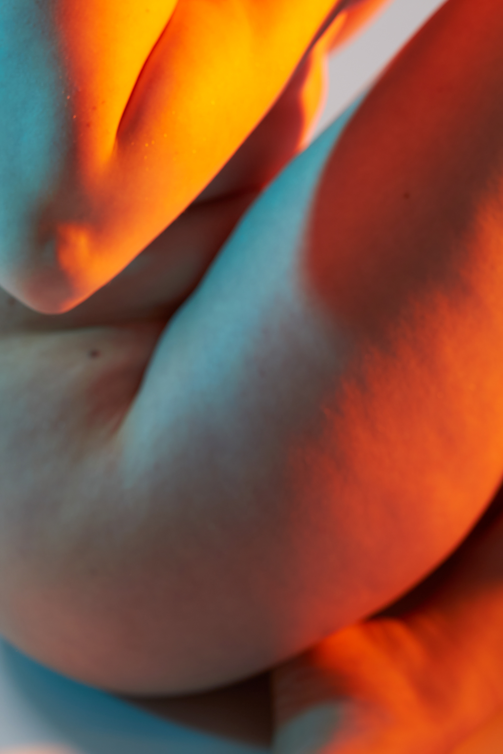 entstanden, den Perfektionismus zu umgehen und seine übrigen Sinne, hauptsächlich das Hören und Fühlen, zu schulen. Beim Fotografieren wurde also durch das fehlende Sehen mit dem Zufall des Ausschnittes gespielt. Zwar hat das Bild einen Vorder- und Hintergrund, die Konturen verschwimmen jedoch ineinander und die Komposition verzichtet absichtlich auf die gewohnte Schärfe. Es wirkt damit weniger komplex. Die verwaschenen Farben finden sich zwischen Komplementär und Warm-Kalt Kontrast wieder. Sie geben dem Körper trotz unklarer Konturen eine dreidimensionale Optik. Der weiblich gelesene Oberkörper wird wie eine Landschaft im Motiv präsentiert. Das Werk bewegt sich in einem schwingenden Zustand der Komplexität und Einfachheit, Erkennbarkeit und Unerkennbarkeit, Verstehen und Interpretation.