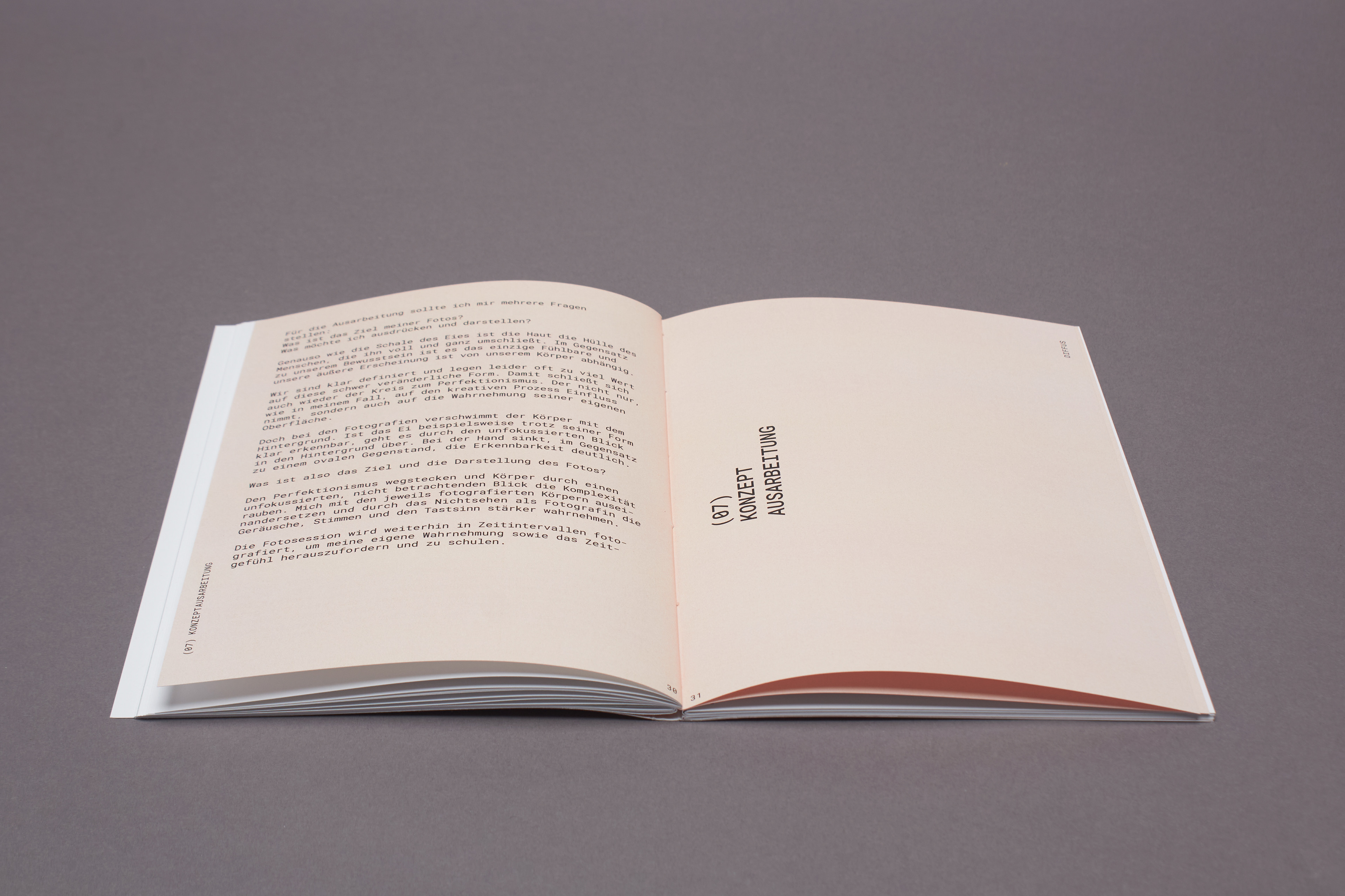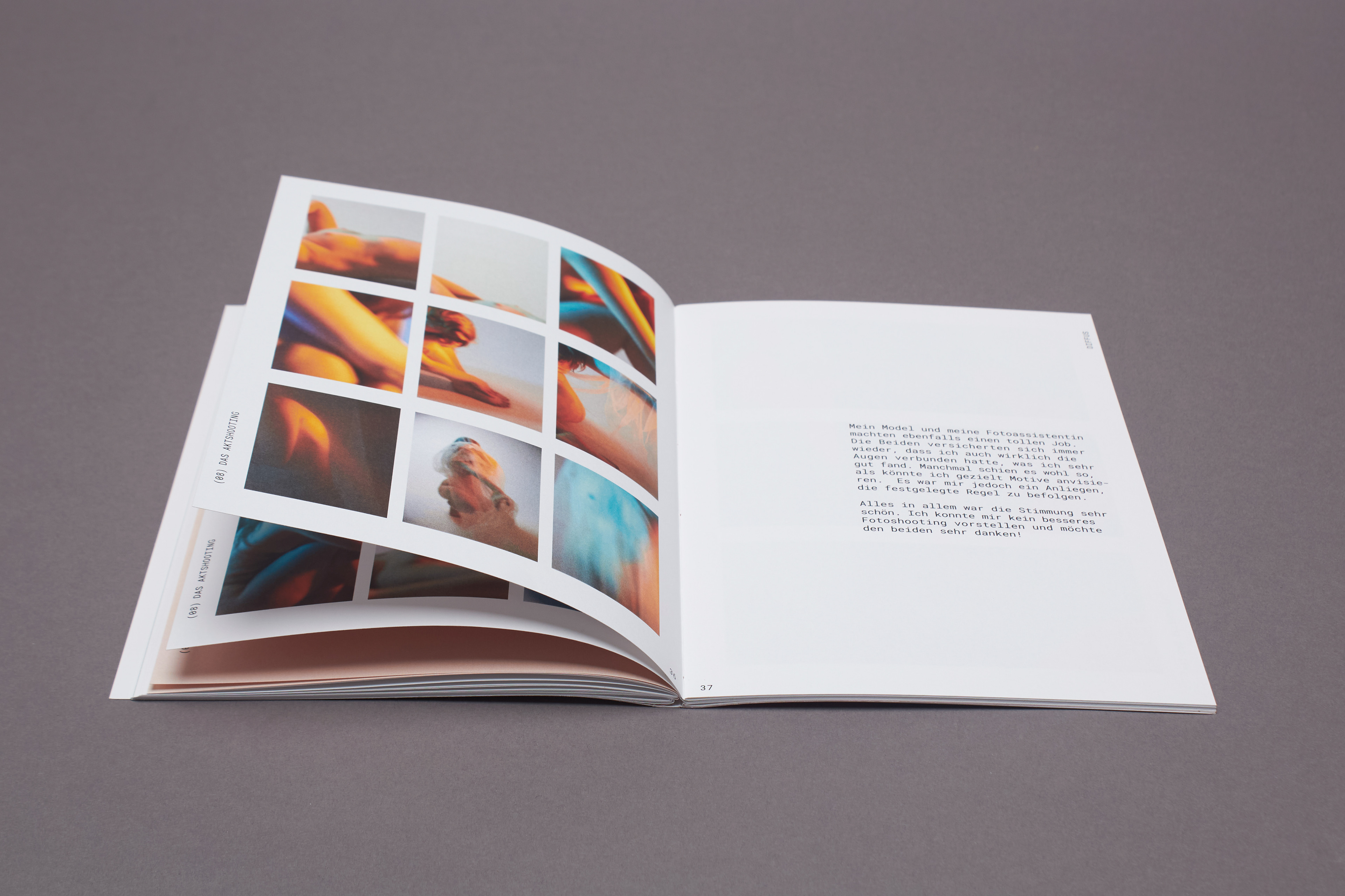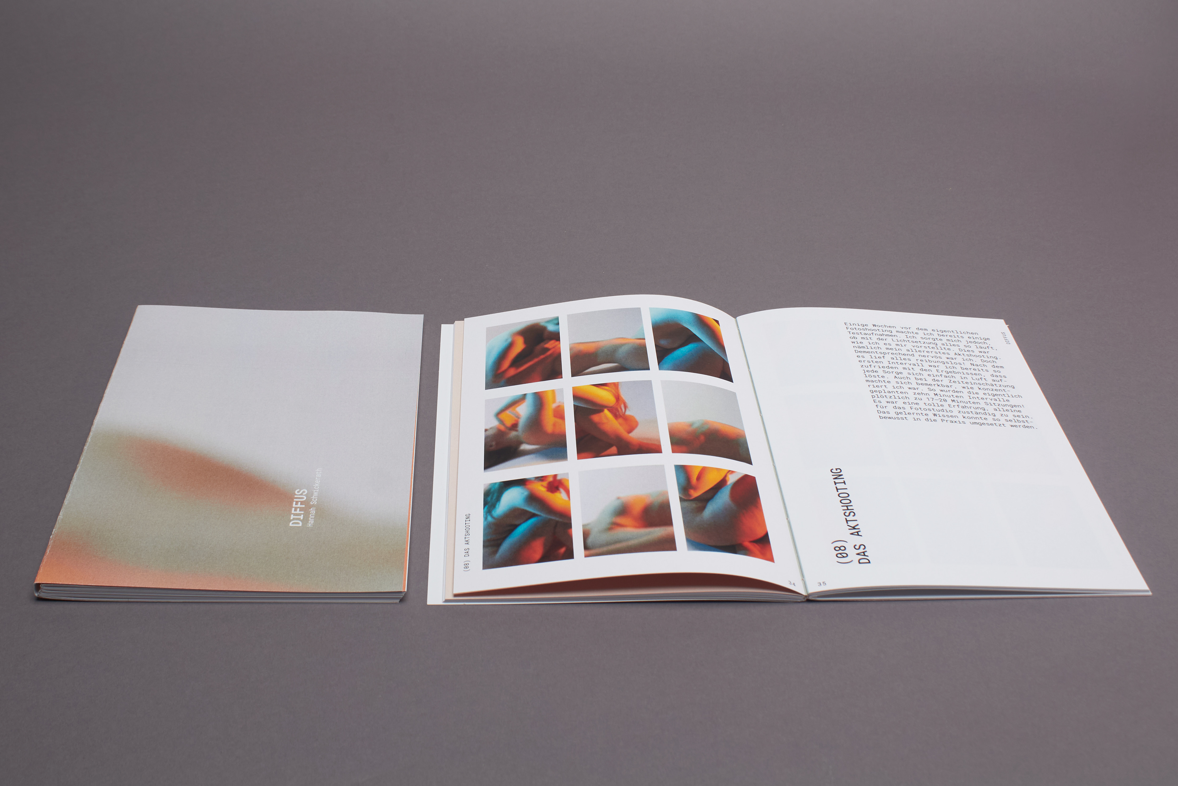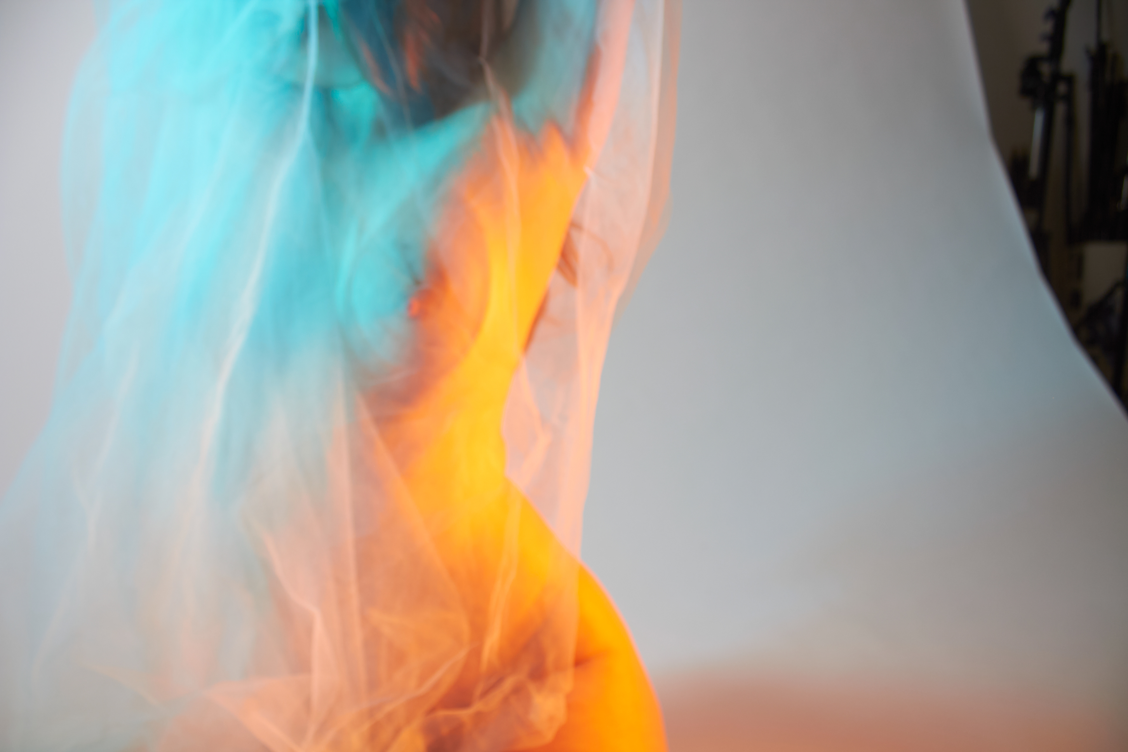 entstanden, den Perfektionismus zu umgehen und seine übrigen Sinne, hauptsächlich das Hören und Fühlen, zu schulen. Beim Fotografieren wurde also durch das fehlende Sehen mit dem Zufall des Ausschnittes gespielt. Zwar hat das Bild einen Vorder- und Hintergrund, die Konturen verschwimmen jedoch ineinander und die Komposition verzichtet absichtlich auf die gewohnte Schärfe. Es wirkt damit weniger komplex. Die verwaschenen Farben finden sich zwischen Komplementär und Warm-Kalt Kontrast wieder. Sie geben dem Körper trotz unklarer Konturen eine dreidimensionale Optik. Der weiblich gelesene Oberkörper wird wie eine Landschaft im Motiv präsentiert. Das Werk bewegt sich in einem schwingenden Zustand der Komplexität und Einfachheit, Erkennbarkeit und Unerkennbarkeit, Verstehen und Interpretation.